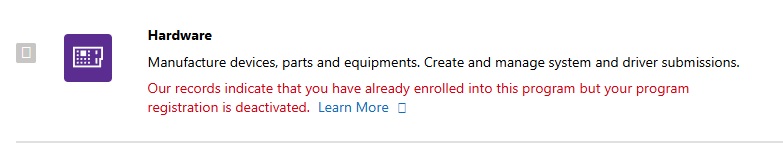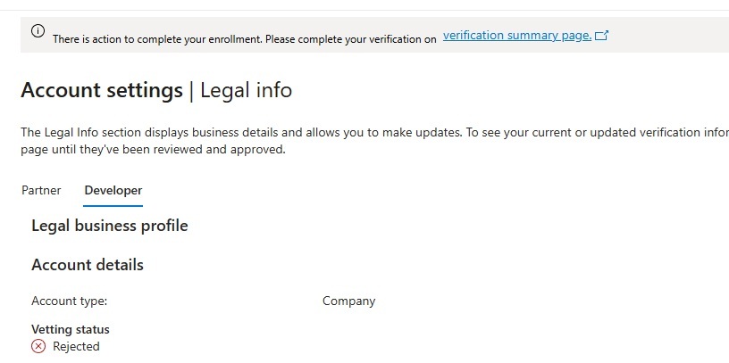 Hi, I was wondering if any else is seeing this (and hopefully resolved it). We use the Microsoft Partner Center for attestation signing of our device drivers but recently it blocked access and redirected to the legal page that said on the developer tab that identity verification was rejected.